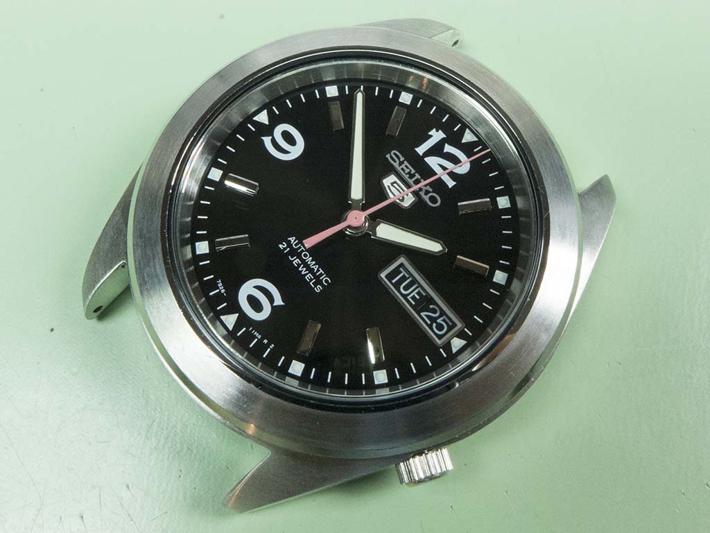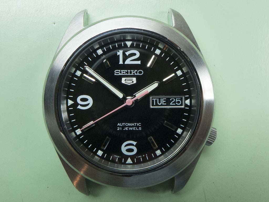 I had an unusual request recently, to paint the seconds hand of a watch from red to pink! I asked why the owner wanted this done and he explained the watch was his wifes and that she (and he) had just bought a pink highlighted NATO strap each that were being sold by a guy who’s raising money for breast cancer research. This particular chap and his wife had their world turned upside down 8 weeks after the birth of their first son when she was diagnosed with breast cancer. Out of a feeling of hopelessness that there was little he could do to help his wife he decided to get some NATO straps manufactured and see if he could raise some funds to battle the disease. The story is here along with details of how to order your own strap, and there’s a link to Mikes instagram account here.