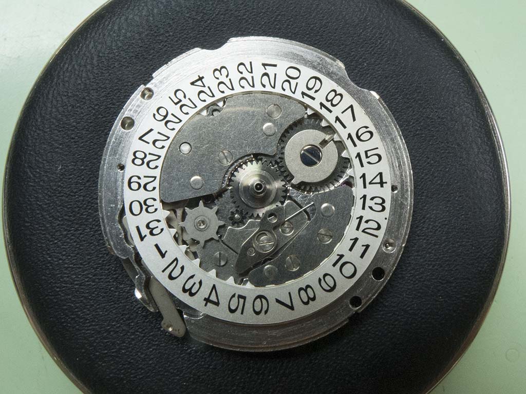 With the dial removed you can see the day/date discs, note the day disk only has seven positions and as such only has one language. The advantage of this is it changes over pretty much at the same time as the date so there’s no delay until the correct day appears like there is with the twin language discs.