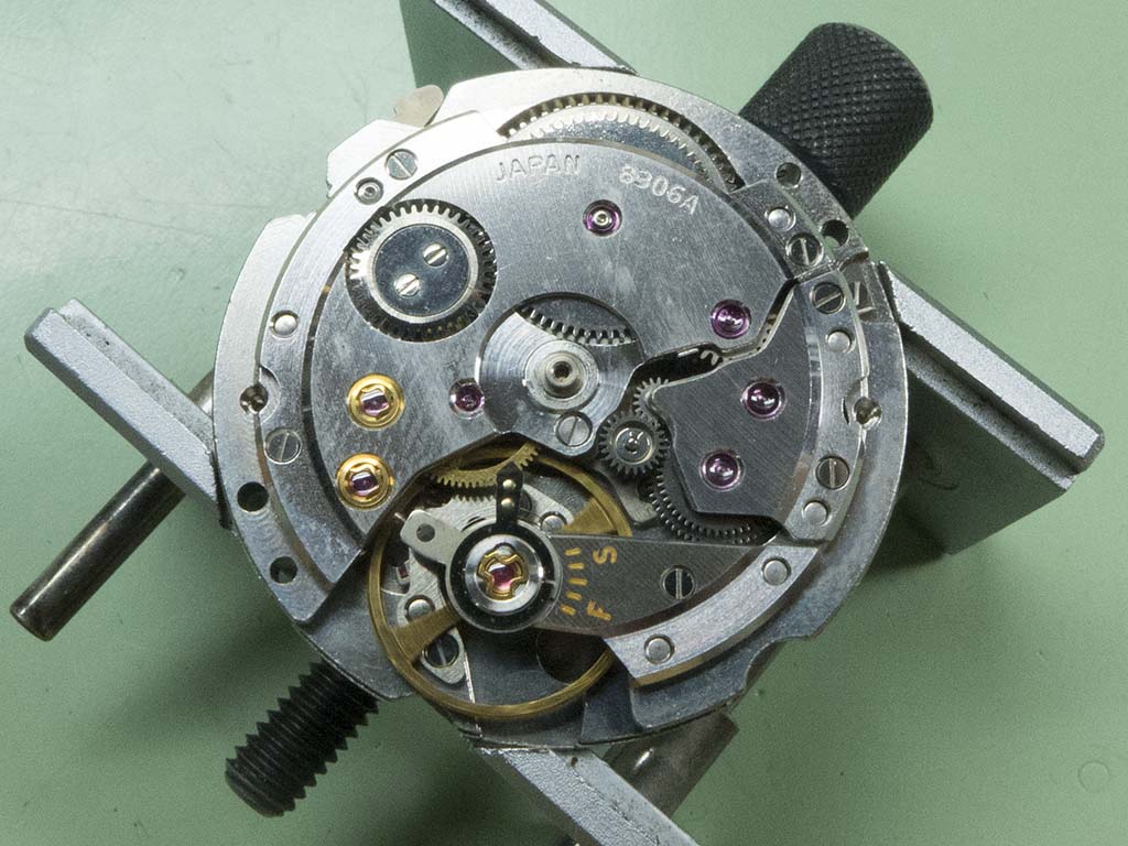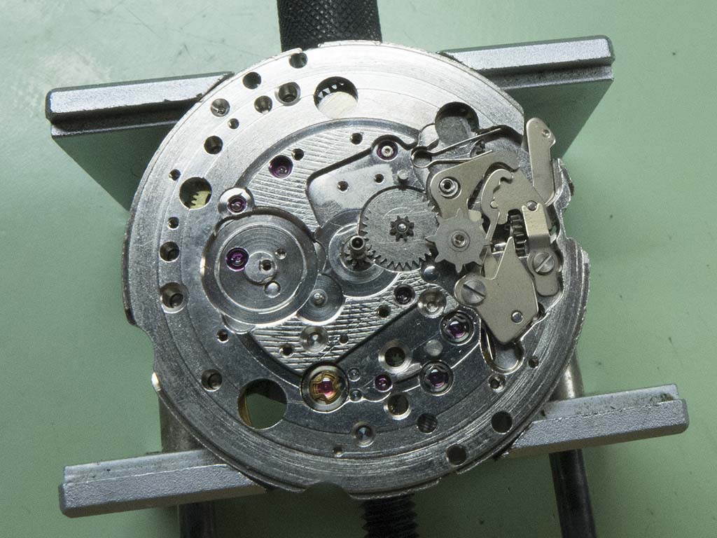The bridge is fitted now, part of the difference in jewel count between this and the 8346 is due to the dust covers on the fourth and escape wheel. These are known as diafix jewels and are supposed to offer some shock protection but in reality as there’s no chaton to move and absorb any shock it’s purely there to keep the dust out.