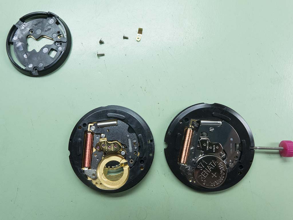 Once the contacts are swapped the movements can be rebuilt.
