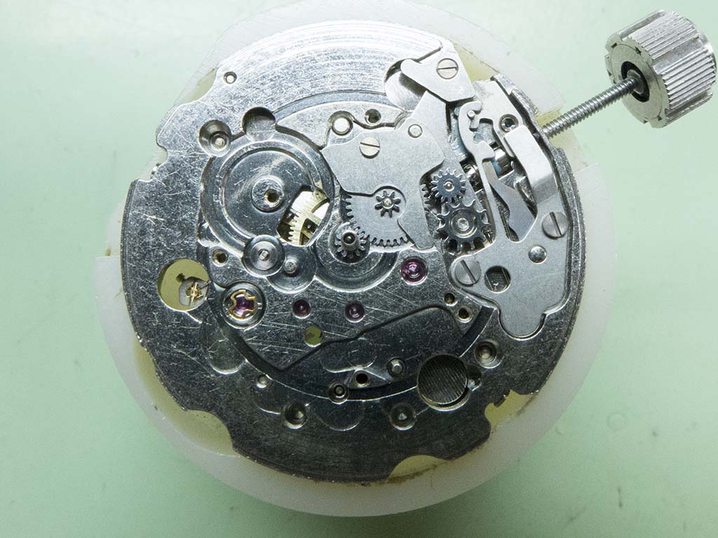 The crown also received a new seal, these are fiddly little buggers to strip without damage but this is what the inside of a 6105-8110 crown looks like, the old o-ring is the one at the bottom of the picture