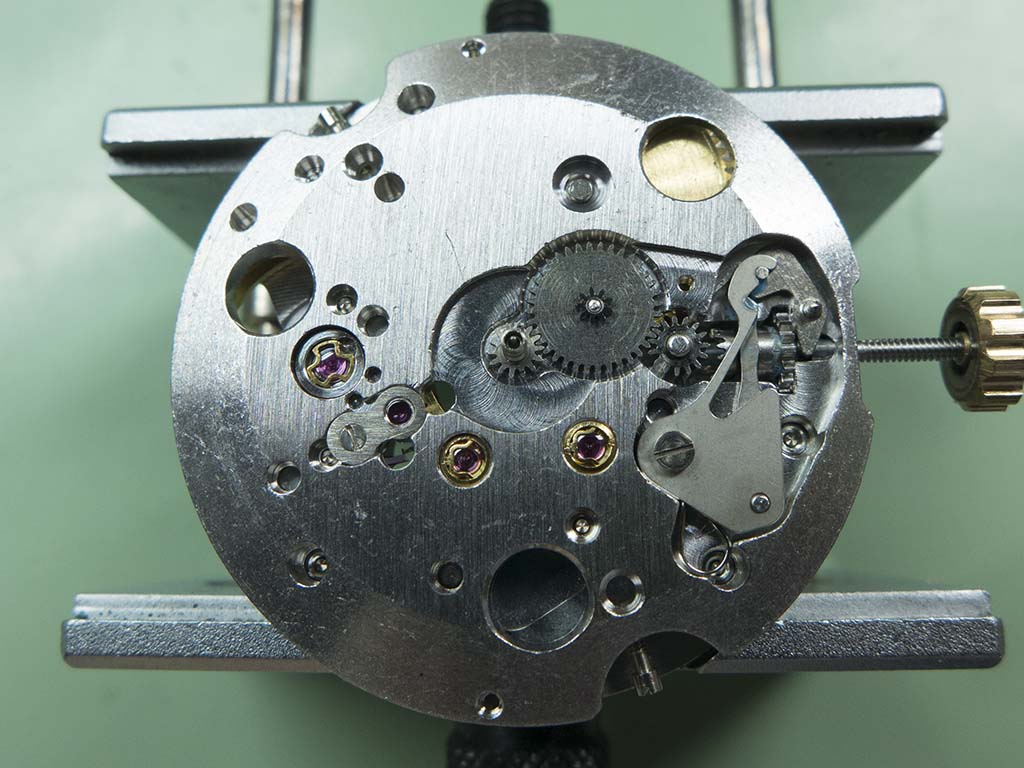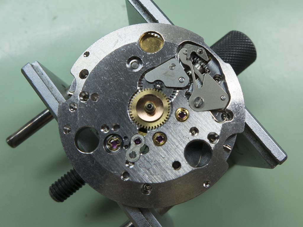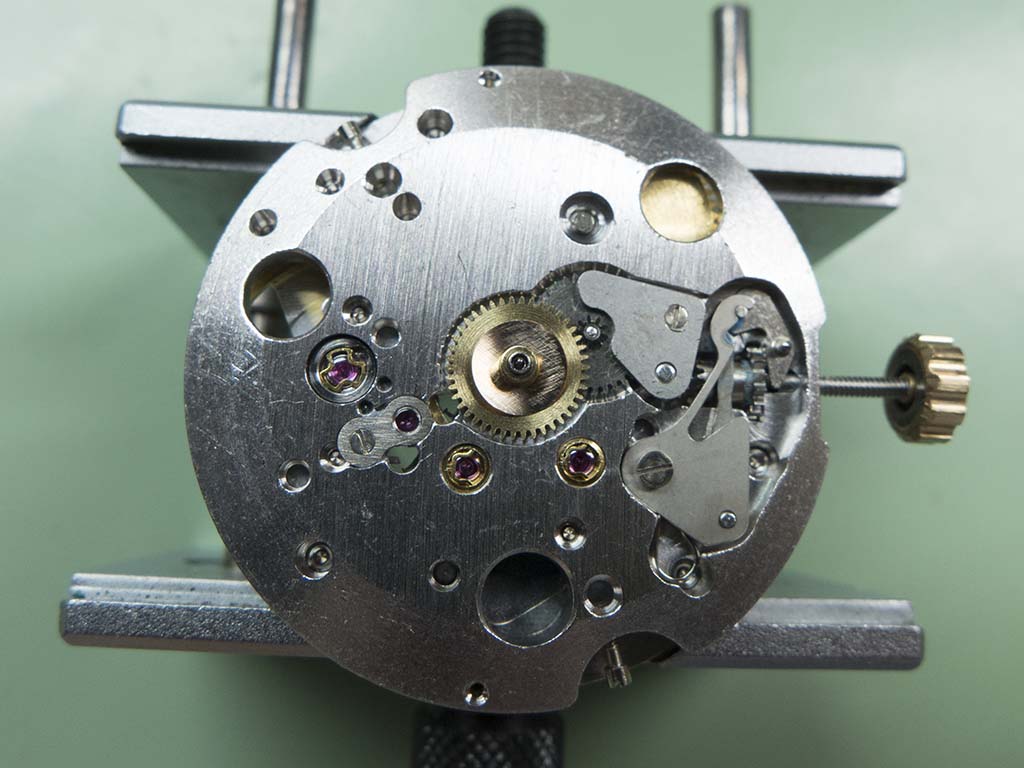 With the dial removed you can see that the mechanism below is relatively straightforward.