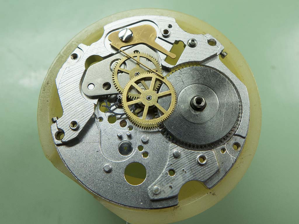 During the testing period an issue appeared with the date quickset. This is a notorious weak spot of the 62xx calibre and on this particular watch it meant that very occasionally the date wouldn’t advance using the quickset when it got to the number 7, it could be overcome by winding the date backwards to 6 and trying again but that’s not good enough so the movement needed removing to sort out the issue. The fault is due to wear in the date corrector and date disk teeth, however the date disks on these are particular to the 6215/6/8 and 6245/6 as they make provision for the depth of the day disk and consequently are hard (impossible) to find new. However the date corrector is used throughout the 62xx calibre family and I had some NOS ones in stock, swapping it out cured the problem.