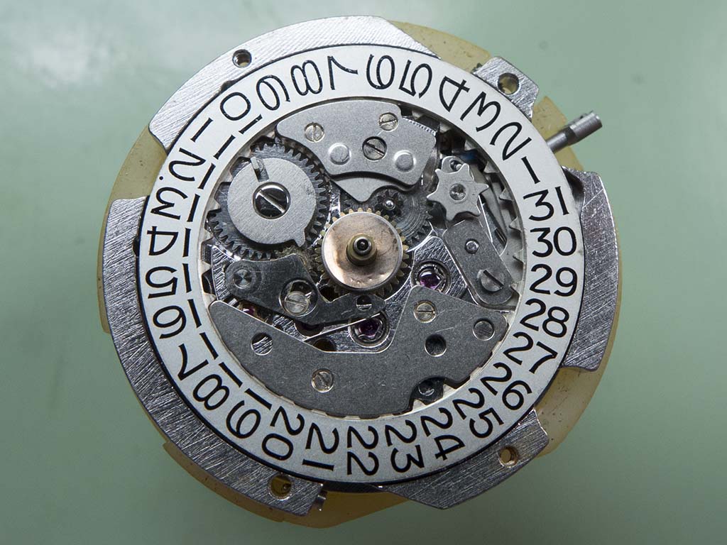The movement is based on the 62xx calibre but has quite a number of differences to the 6205/6’s and 6217s. The calendar mechanism is the same as that which is used in the 6216/8, in fact the only thing missing is the day disc, it still has the day change finger and day jumper present.