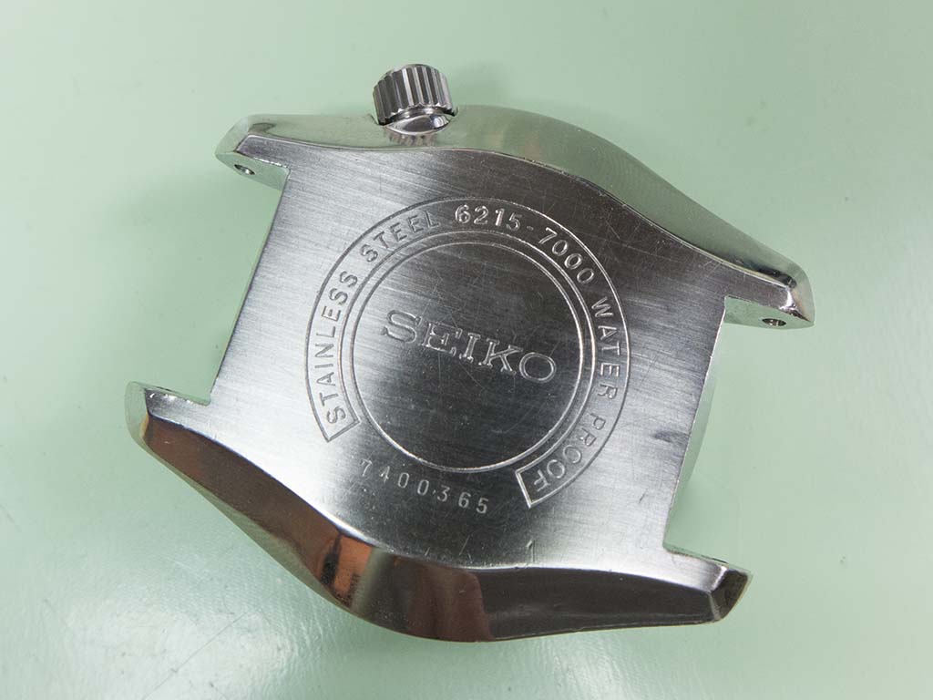 The other ‘weak’ point of the 6215-7000’s is the crystal sealing arrangement. The large flat seal sits on top of the chapter ring but apart from cushioning the movement from the crystal affords no moisture protection at all. This is all provided by the o-ring that fits between the crystal and the case. When the retaining ring is tightened down as the pressure increases on the large flat washer it tries to rotate and turn the dial and movement below it, in turn this is what puts the sideways torque on the crown joint. It’s little wonder that Seiko soon upgraded the 6215-700 to the 6159-7001 and iron out the weak spots. Of course the small production run makes the 6215-7000 significantly harder than the 6159-7001 to source (in itself not easy to find) and highly collectable!
