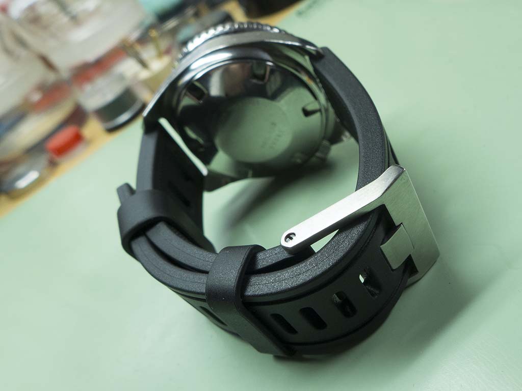The rear of the watch is a solid lump with no embellishment beyond the model, material, depth rating and serial number.