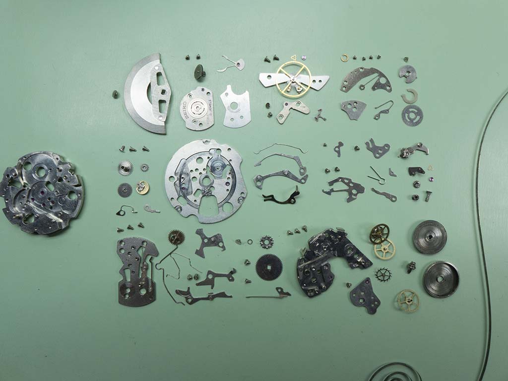 This means rebuilding the keyless work, the motion work and the hour recording wheels and levers.