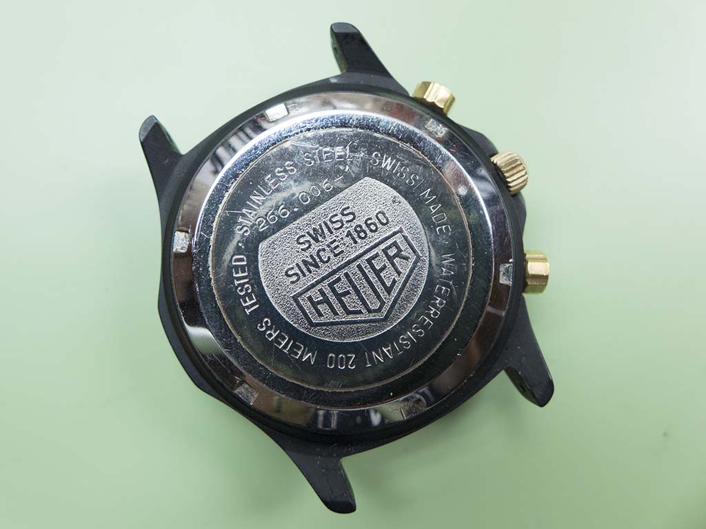 The watch case is PVD coated with in black and the caseback is emblazoned with the Heuer logo and model number.