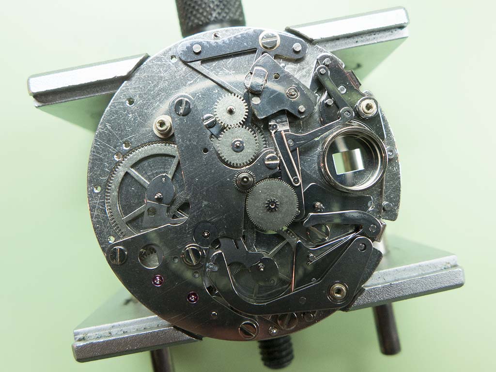 Whilst it was cleaning it allowed me to strip the chrono module. These can be tricky as if your not careful there are quite a few springs that can fly off and ping levers away into the ether never to be seen again!