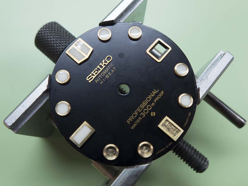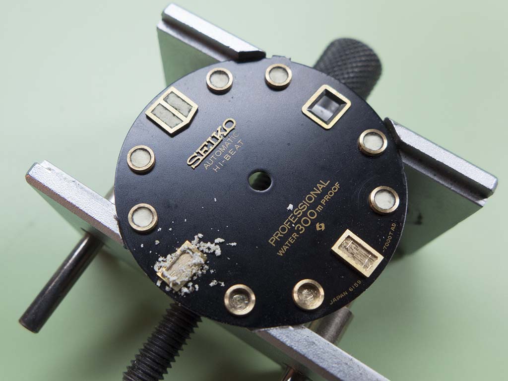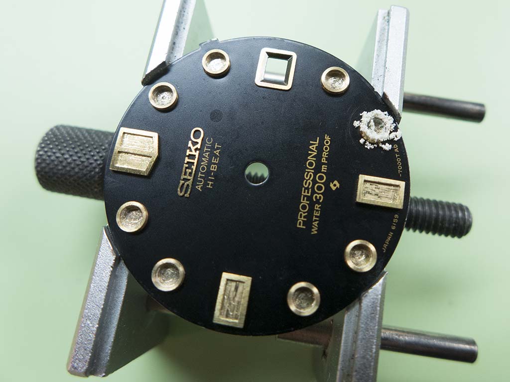 The dial and handset are done in this shot with just the red stoplight on the seconds hand to do once the white had dried.