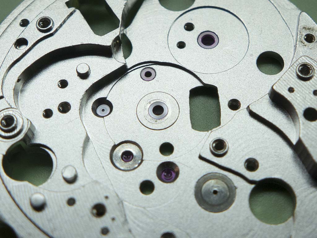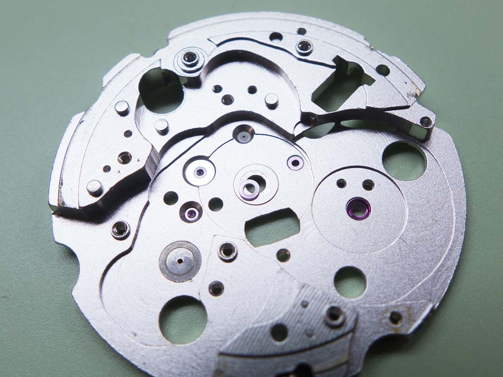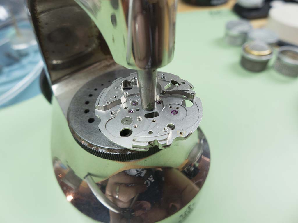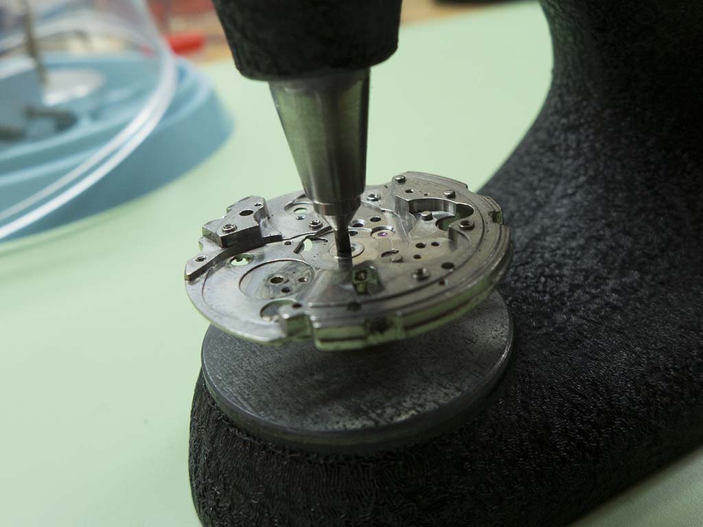 With the watch completely stripped now the first job was to flatten the dished mainplate which was done with the staking set.