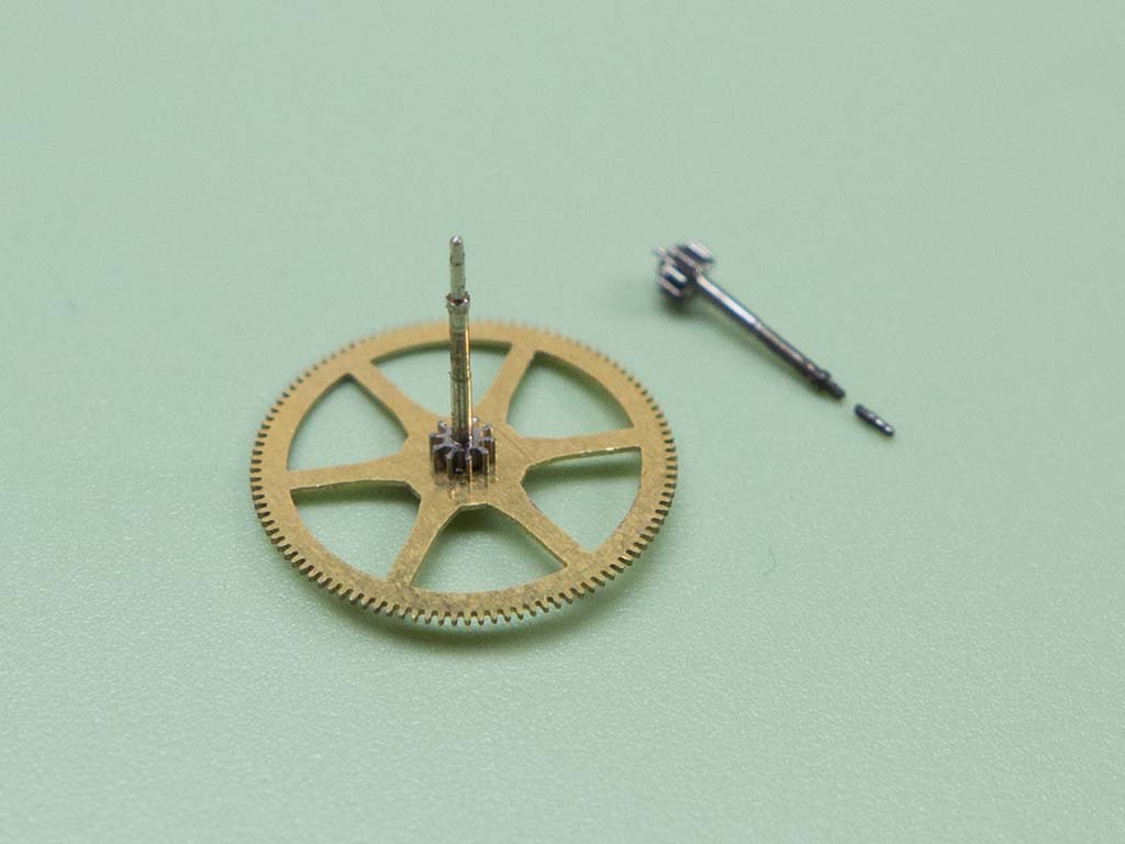 The next issue was the fourth wheel. Whoever had partially stripped the movement had somehow managed to pull the wheel from the pinion, probably due to the corrosion.