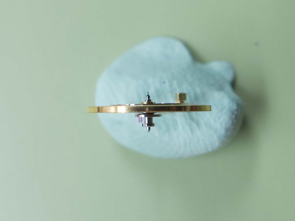 The last issue was that the bottom pivot was snapped off the balance staff. This was probably cause by the balance assembly being stored loose with the rest of the parts, it doesn’t take much effort to knock the pivot off in those situations.