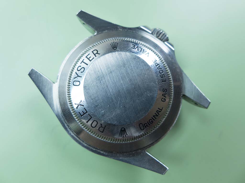 The caseback is engraved with ROLEX OYSTER, a couple of coronets and Original Gas Escape Valve. Very few Rolex have engraved backs, this and the Millguass being notable exceptions.