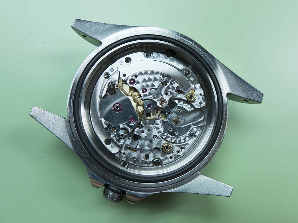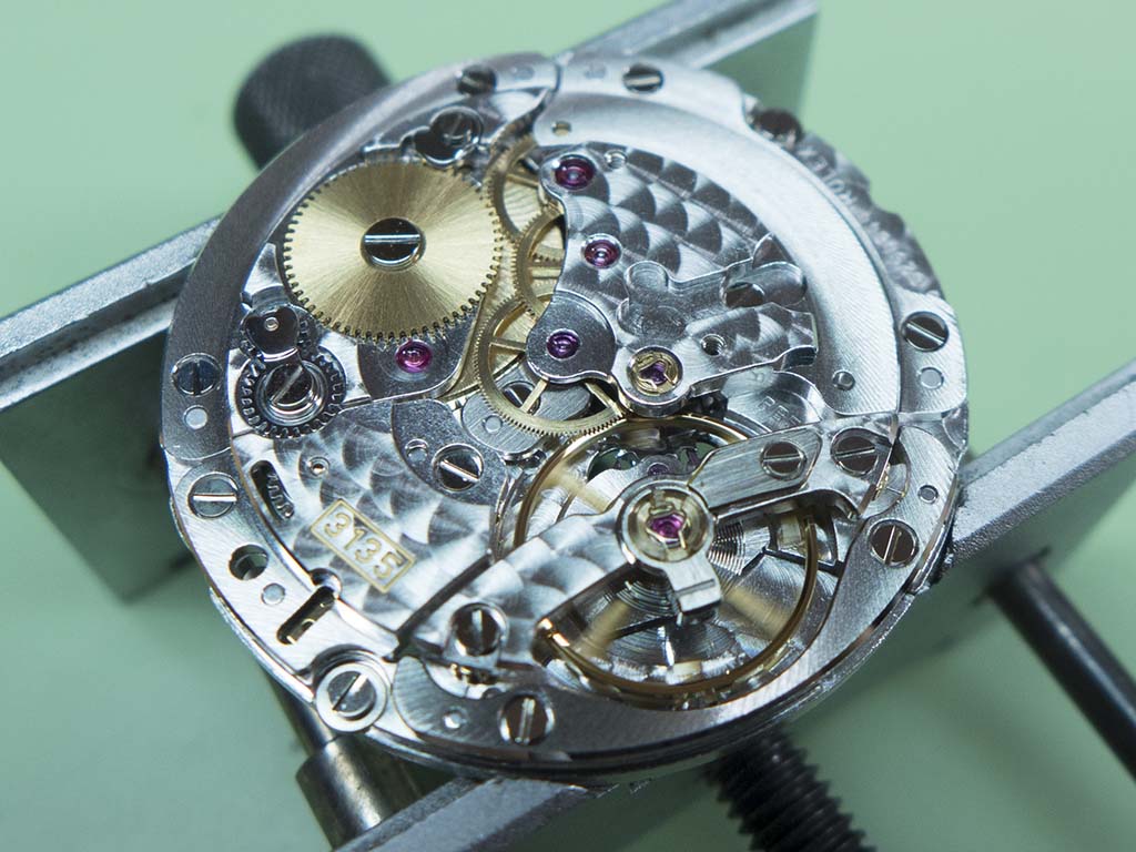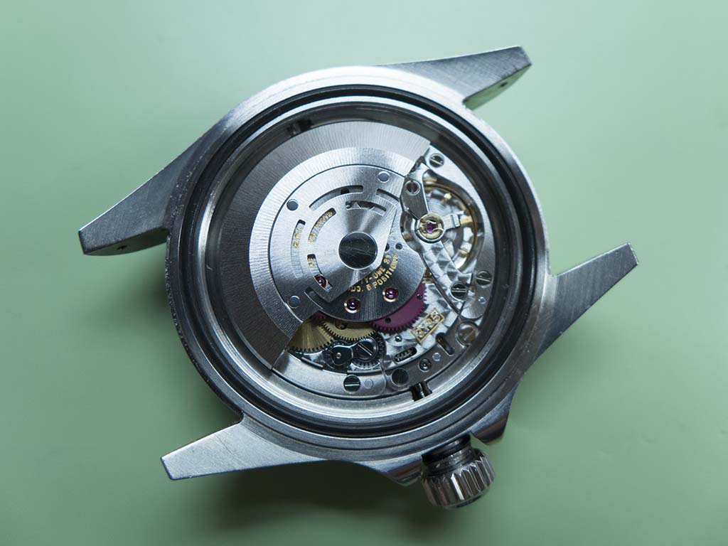 With the caseback removed we get a glimpse of the calibre 3135 movement, a veritable workhorse for Rolex.