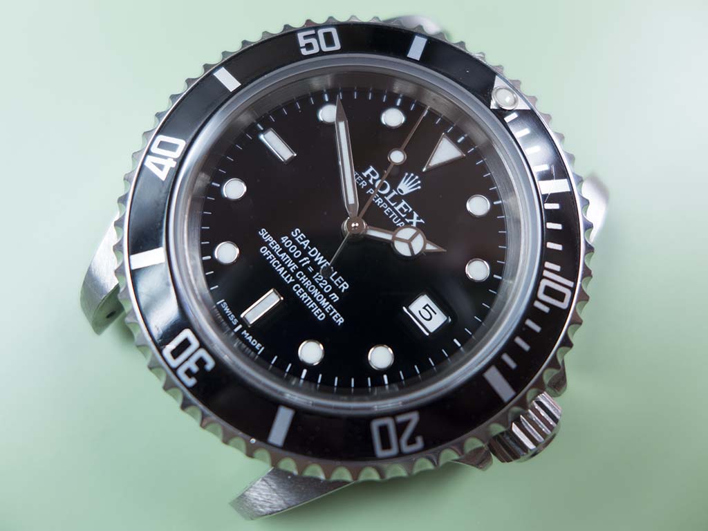 This Rolex Sea Dweller ref 16600 came in recently for a service and I thought I’d feature it as I love these particular watches, I’ve had one for many years and they are my favourite Rolex sports watch. I’ve had them, sold them, tried vintage Rolex (5513 & 16800) but have always returned to the ref 16600 – there’s just something about them! The one featured is an F from 2004, meaning the serial number starts with the letter F. The various letters denote years of manufacture and this is a handy way of dating your Rolex if your not sure how old it is, however Rolex now uses random serial numbers which just isn’t cricket 🙂
