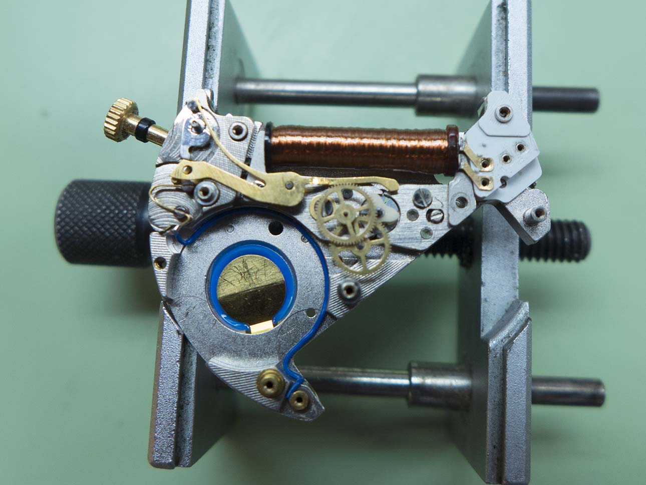 I then started on the other side, here the coil (which tested fine at 3.07kΩ), train and stop lever are fitted….