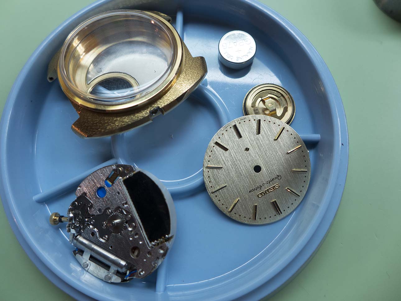 I fitted the dial and handset next and waited for instructions as to what to do next from the owner. The conclusion (which I’m in total agreement with) was that he would prefer to see the non date example running as this one is the archetypal Astron, this will give him time to try and unearth some spares in order to get the both running again. He’s currently in contact with Seiko to see if they can help with any leads, info or even better parts!