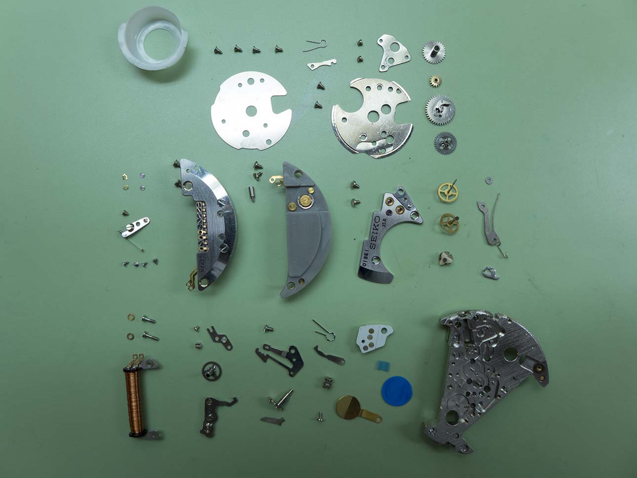….and the bridge, indexing arm,  jewel caps and springs.