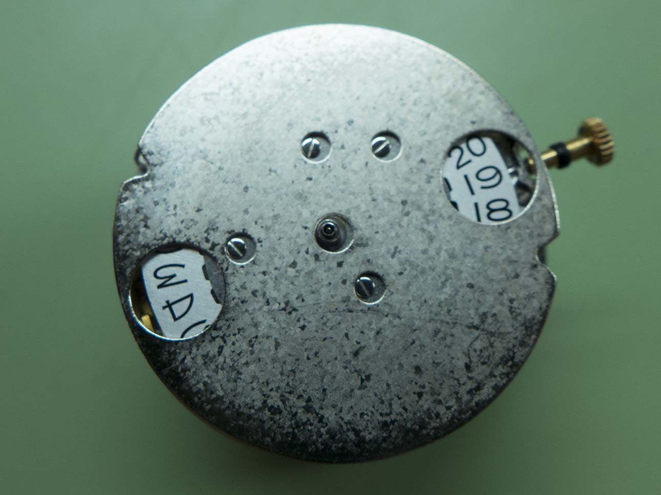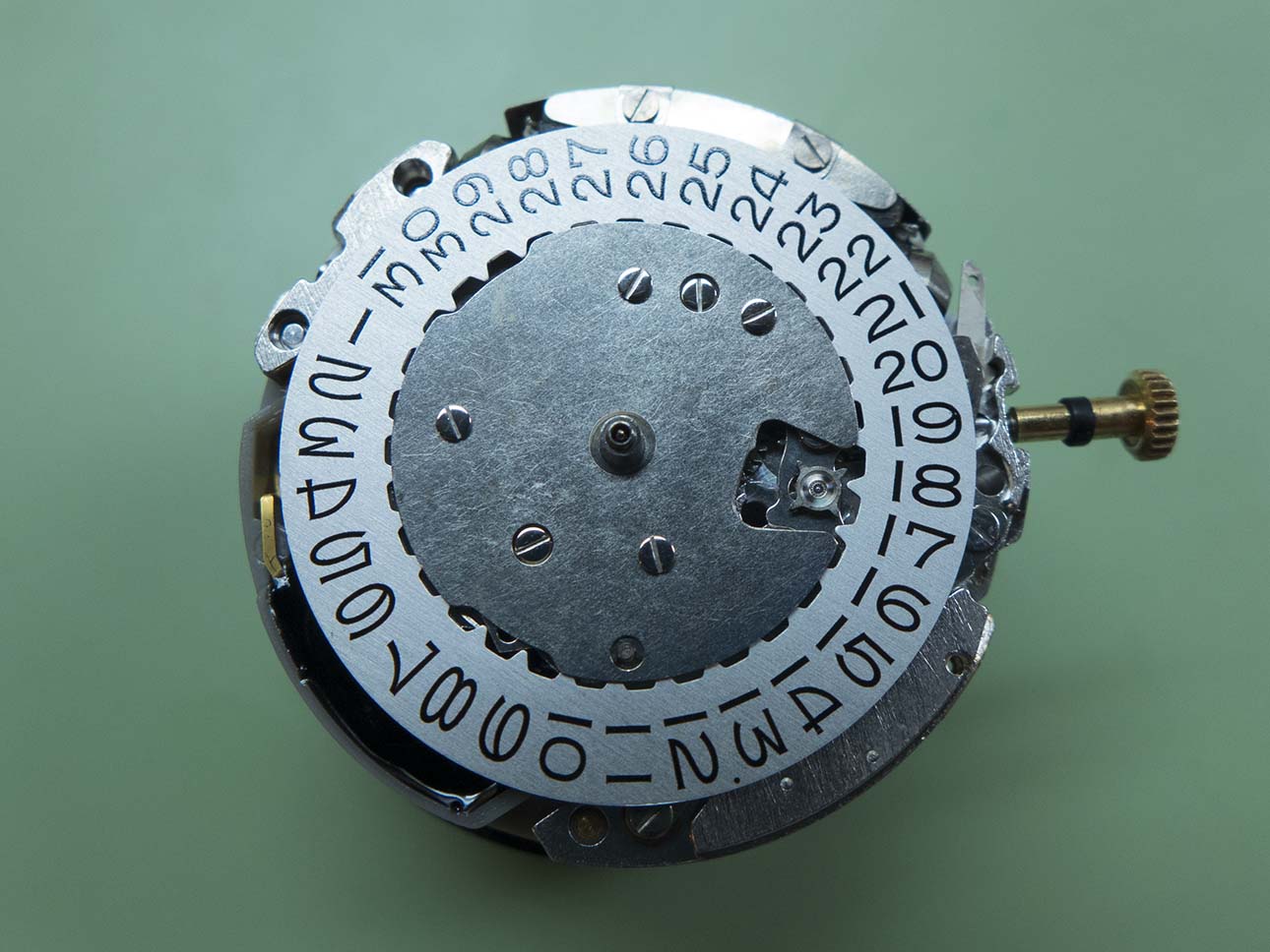 You can see the date disk with the dial removed. The font is identical to that used on the 62xx caliber movements with the distinctive curved diagonal on the “4”.