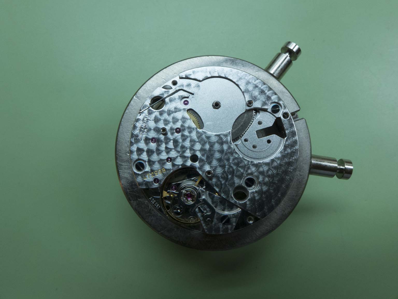 With the top plate off it’s looking a lot more 7750ish with the date driving wheel and keyless work on show.