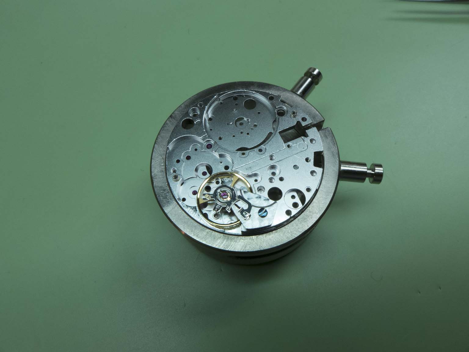 Turn the movement back over and fit the autowind components and it’s ready for the dial and hands.