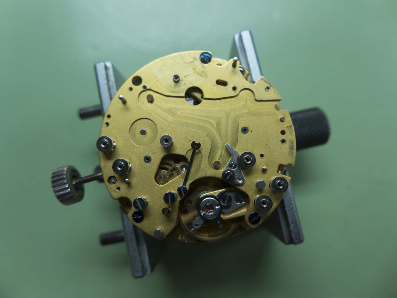 This I could do because of the type of 2nd wheel canon pinion this calibre uses, it can be assembled and fitted from just the wheel train side of the movement.