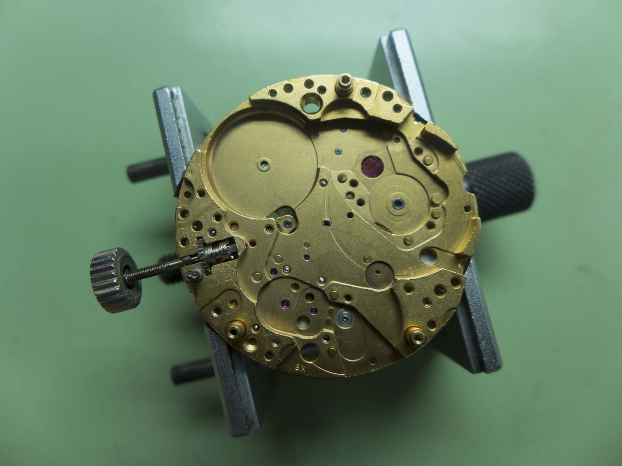 In this shot I’ve removed the movement and am ready to strip the hands and dial.