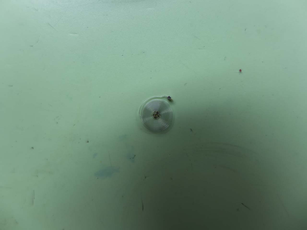To do this the hairspring has to be removed from the balance. Here it is after I worked it back to the correct shape, however although the delta was much improved the rate was now slow and there wasn’t enough room for adjustment on the cam based adjuster the calibre 12 has to get it where it needed to be. This meant I had to unpin the hairspring from the stud and shorten it slightly.